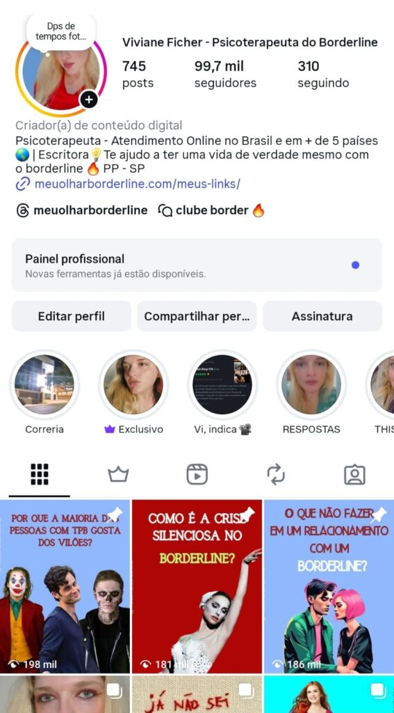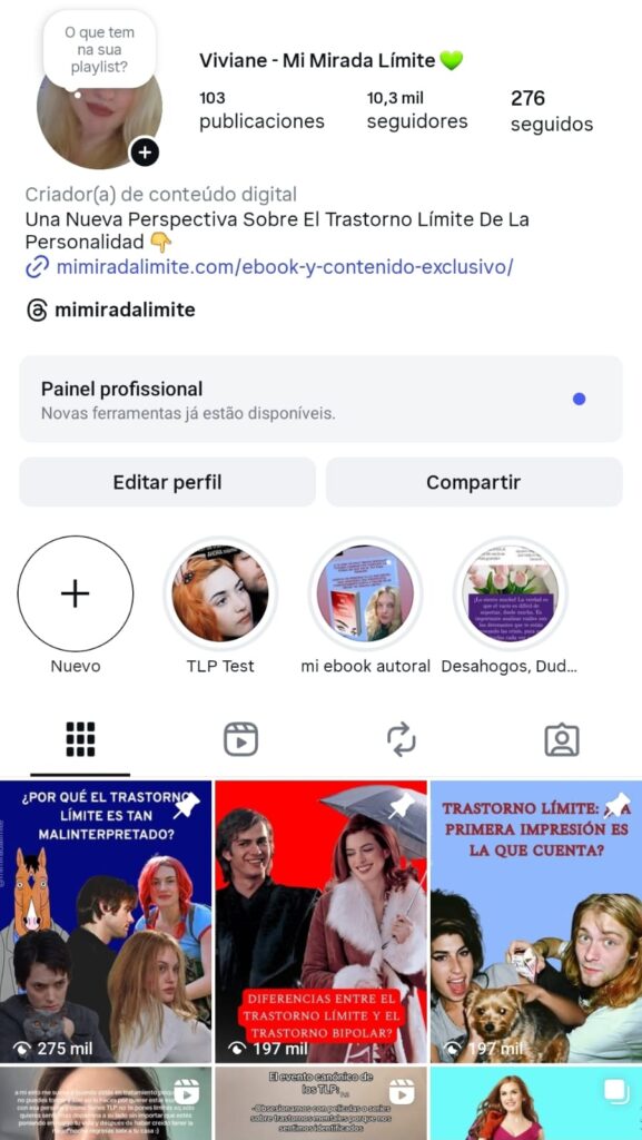 LA CREADORA DE LA PÁGINA MEU OLHAR BORDERLINE, EN BRASIL, AYUDO A MÁS DE 91.5 MIL PERSONAS EN MI PÁGINA. TENGO 28 AÑOS, SOY ESCRITORA, PSICOANALISTA, INVESTIGADORA DE TRASTORNOS MENTALES HACE MÁS DE 7 AÑOS Y CREO CONTENIDOS DIGITALES, INFLUYENDO EN LAS PERSONAS Y, PRINCIPALMENTE, TRATANDO DE ELIMINAR TODOS LOS ESTIGMAS QUE EXISTEN ALREDEDOR DEL TRASTORNO LÍMITE DE LA PERSONALIDAD.